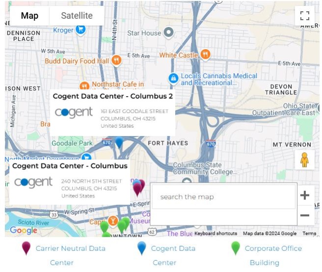 Cogent other On-Net buildings in the greater Columbus area and throughout Ohio, including Akron, Cleveland, Cincinnati, Dayton, and Toldeo. This includes office buildings and other data centers.