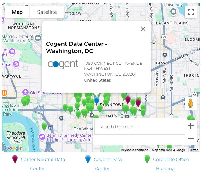 Cogent has many other On-Net buildings in the greater Washington DC area, including office buildings and other data centers.