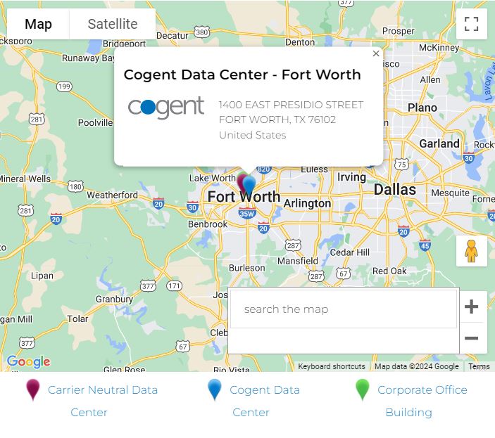 Cogent has On-Net buildings in the greater Fort Worth area. We also have On-Net locations throughout Texas, including Dallas, Austin, Houston, San Antonio, McAllen, El Paso, and Amarillo. This includes office buildings and other data centers.