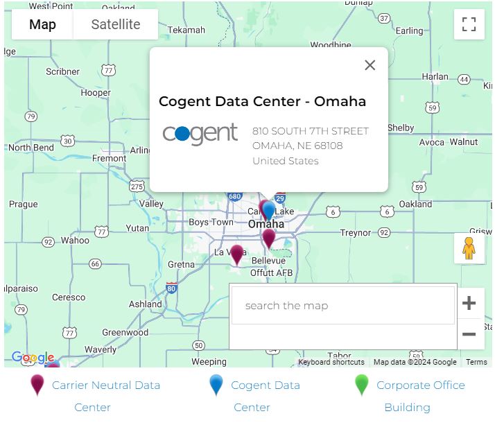 Cogent has other On-Net buildings in the greater Great Plains region, including Lincoln, Des Moises, Kansas City, and Denver. These locations include office buildings and other data centers.