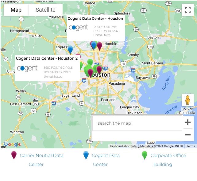 Cogent has other On-Net locations in Houston area. We also have On-Net locations throughout Texas including Dallas, Fort Worth, Austin, Amarillo, El Paso, McAllen, San Antonio. This includes office buildings and other data centers.