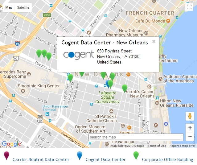 Cogent has many other On-Net buildings in the greater New Orleans area, including office buildings and other data centers.